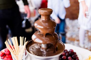 Teplá čokoláda stéká po patrech fontány a láká k namáčení ovoce, sušenek i marshmallows. Atraktivní prvek, který se stane středem pozornosti a sladkou tečkou celé akce.