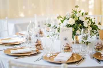 Slavnostně prostřený stůl je centrem setkání. Navrhneme aranže, které zaujmou a zároveň podtrhnou charakter akce.
