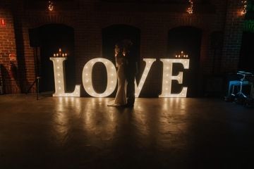 LOVE, jména nebo firemní logo – svíticí písmena dodají prostoru osobitost a stanou se ikonickým prvkem večera.